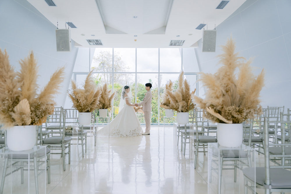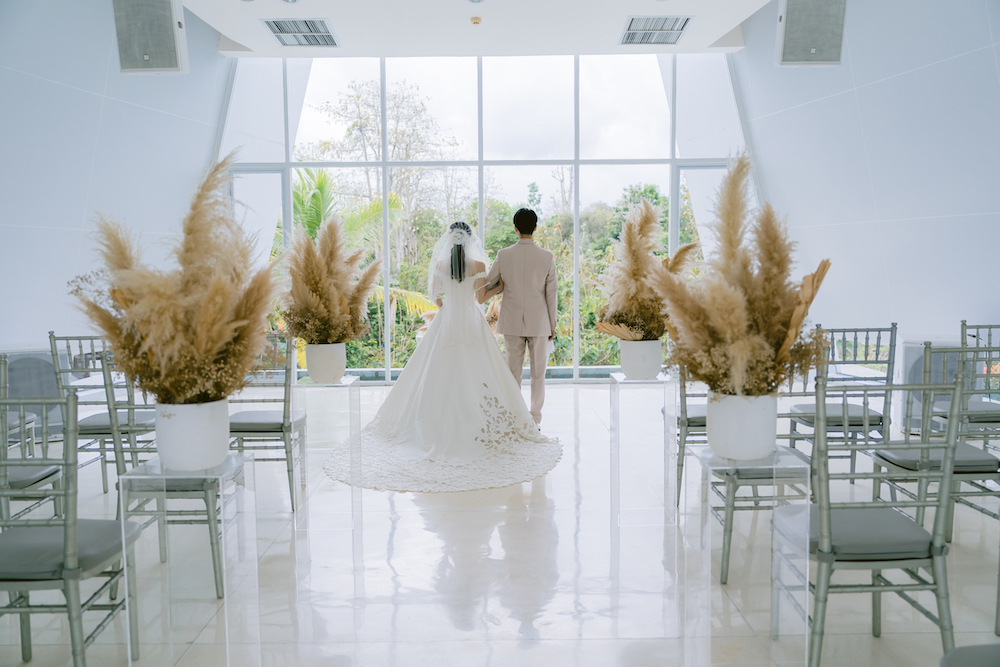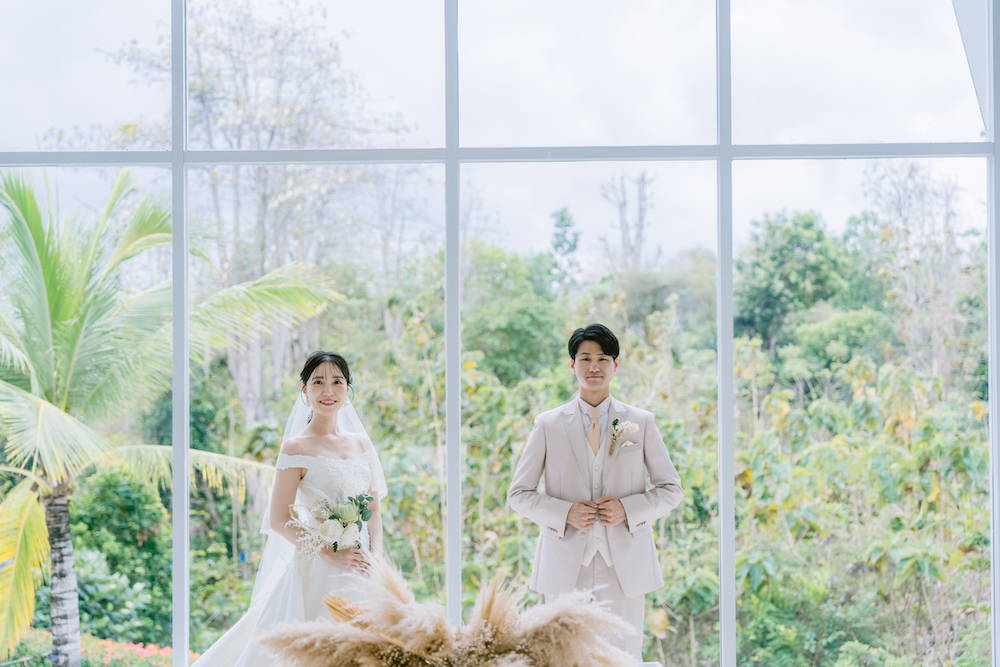 一面ガラス張りのチャペルから望む、バリ島の豊かな緑。