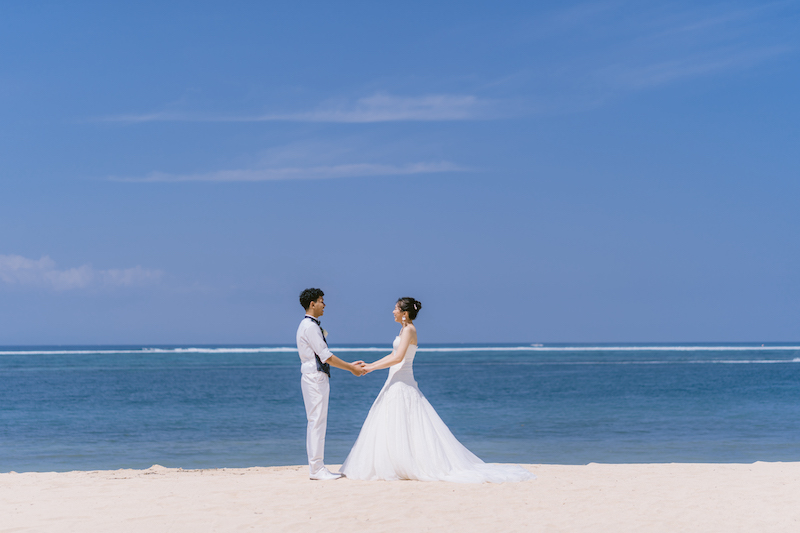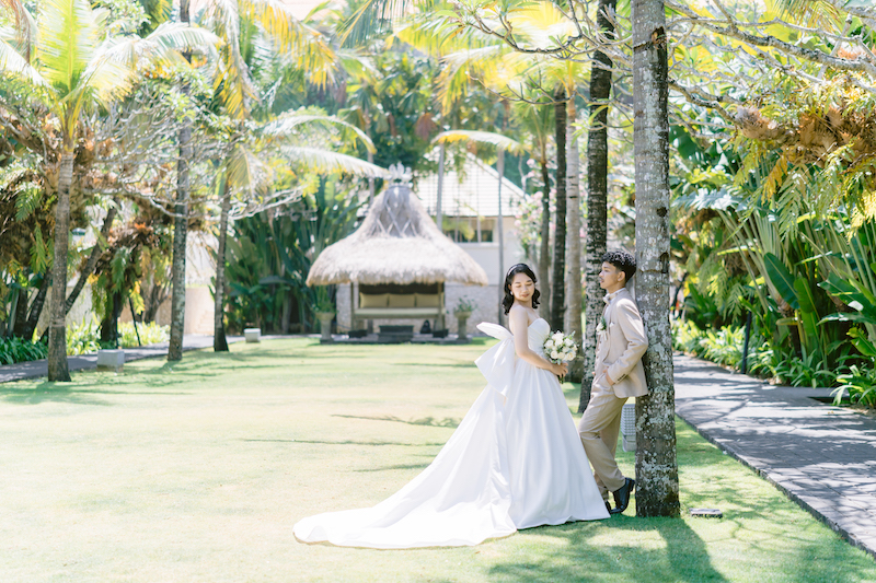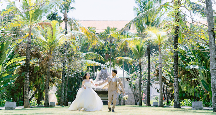 挙式の後は、ラグジュアリーなホテル内のビーチやガーデンでの撮影が可能です。